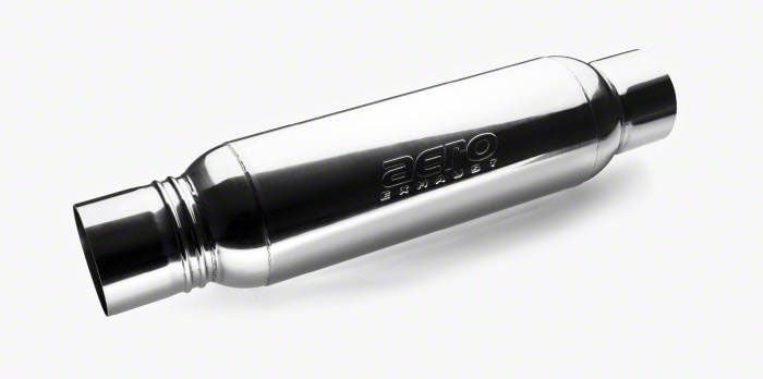 Construction and Appearance. This Aero Exhaust Turbine XL Resonated Muffler is fully welded from 304 stainless steel. The temperature-rated, ceramic, sound-dampening material cancels exhaust drone. Stamped with the Aero logo, the mirror polished finish looks sensational.