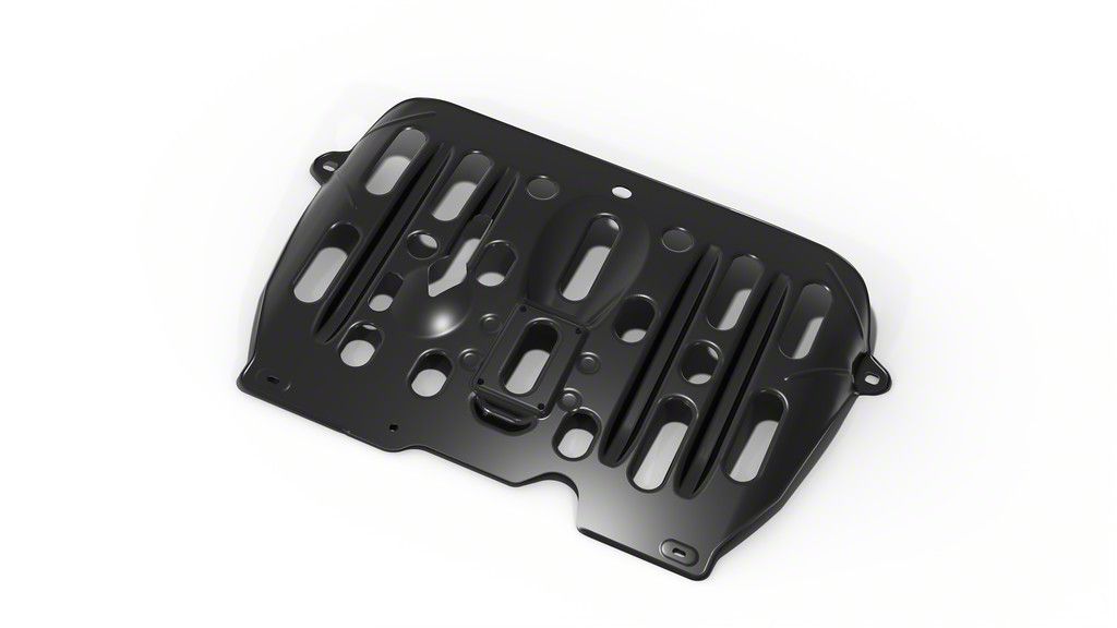 Construction and Appearance. This skid plate is finished with a black powder-coated layer, offering corrosion resistance and long-lasting durability. Precision-cut for a direct bolt-on installation, it ensures a perfect fit and reliable underbody protection without any modifications.