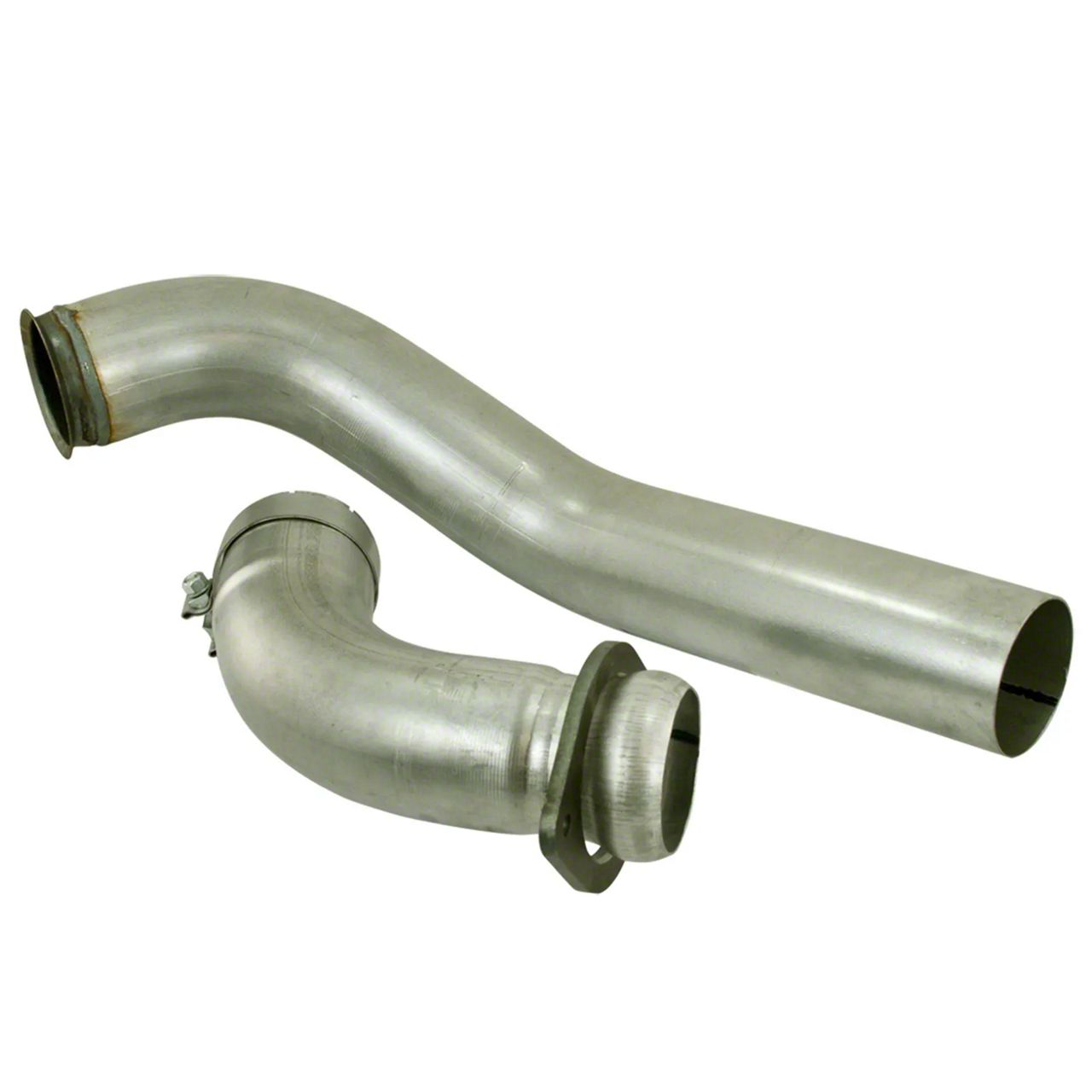 The Large Bore-HD down pipe upgrade kit is constructed of mandrel bent 409 stainless steel with OE style hangers and clamps. This 4" down pipe provides maximum flow for increased horsepower, torque and throttle response. The increased air flow also lowers EGT's and helps improve MPG. All hardware and components are included for a no-trouble installation.