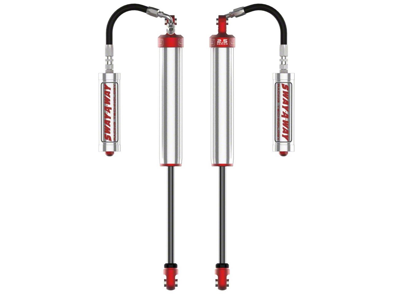 Exceptional Precision and Durability. The AFE Control Sway-A-Way 2.5 Rear Shocks with Remote Reservoirs for 0 to 1.50-Inch Lift are designed to provide exceptional damping performance and enhanced ride quality. Engineered for precision and reliability, these shocks improve handling and stability for both on- and off-road applications.
