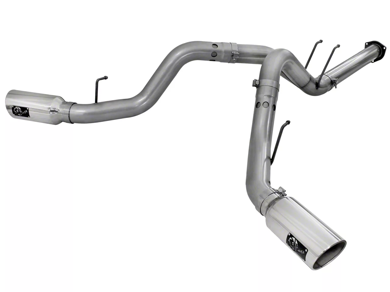 Boost Torque and Horsepower. Besides giving your truck a more aggressive exhaust growl, installing this AFE Large Bore-HD 4-inch DPF-Back Dual Exhaust System with Polished Tips will also boost its performance significantly. Thanks to this exhaust kit’s intelligent design and top build quality, the exhaust flow of your vehicle will be greatly increased. This results in higher horsepower and torque, as well as greater fuel efficiency.