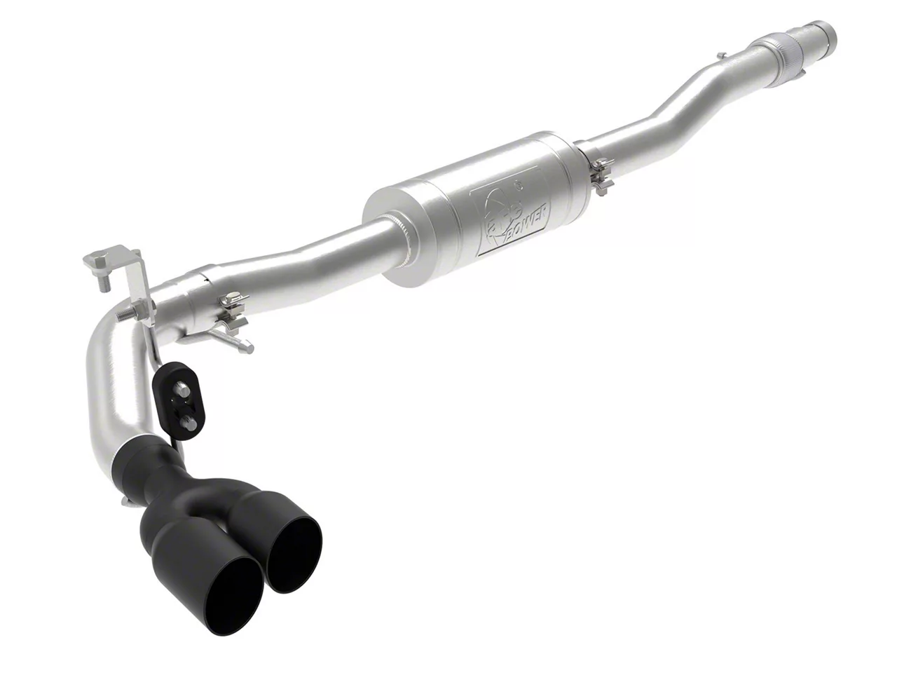 Durable Build Quality. This AFE cat-back exhaust utilizes 3-inch wide 304 stainless steel tubes that are fully mandrel bent. This construction ensures turbulence-free exhaust plumbing that’s also much more rigid. This exhaust also includes a 3.50-inch wide straight cut single entry, dual exit stainless steel exhaust tip that’s powder-coated in black for awesome looks.