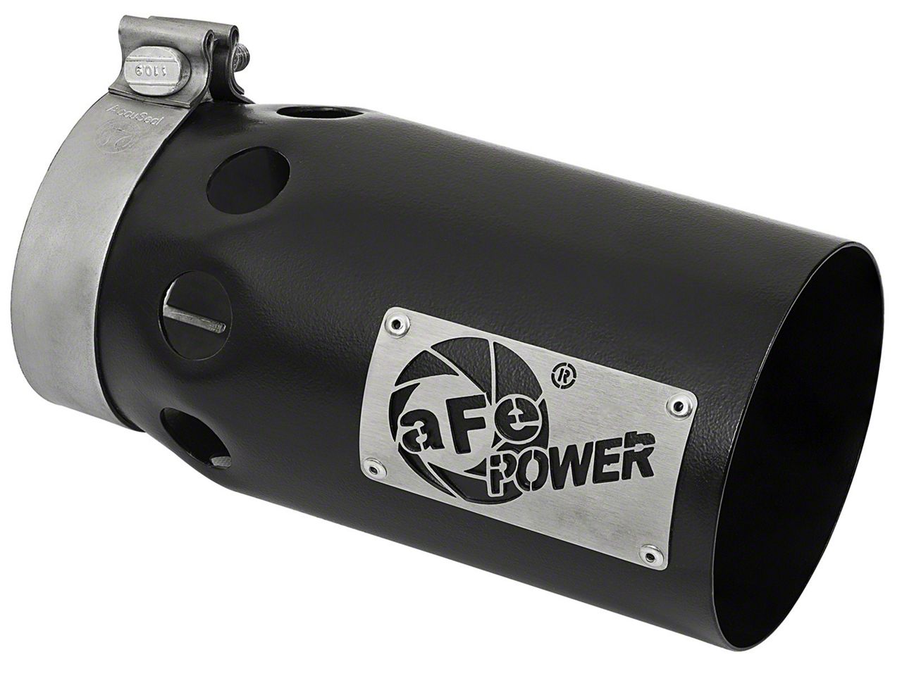 Application. This AFE 5-Inch Rebel XD Series Black 409 Stainless Steel Exhaust Tip offers a universal fitment.