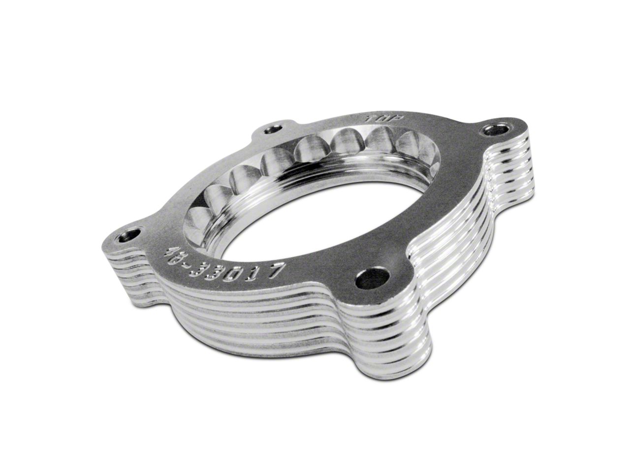 Durable Billet Aluminum. This throttle body spacer has been machined from industrial-grade T-6061 billet aluminum for long-lasting durability and performance. It comes with serrations at the spacer entrance to reduce whistling at idle and cruising speeds.