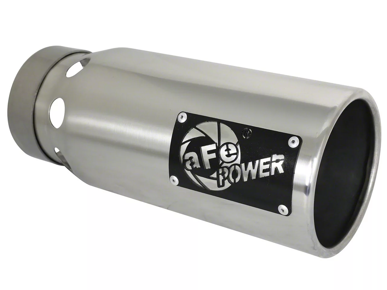 Withstand the Heat. This AFE 5-Inch SATURN 4S Polished 304 Stainless Steel Exhaust Tip; 4-Inch Connection serves as a beautiful complement to any 4-inch exhaust system. The intercooled tip can withstand high temperature thanks to its extraordinary build.