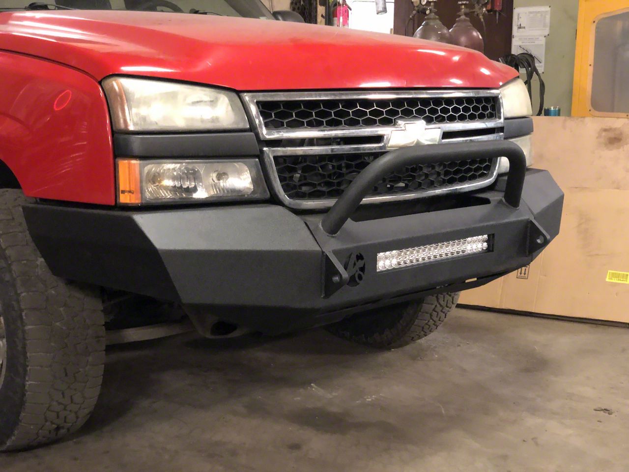 Illuminating. This front bumper also includes a cutout for a 22-inch light bar and has 2 1-inch shackle tabs with 3/16-inch mounting brackets.