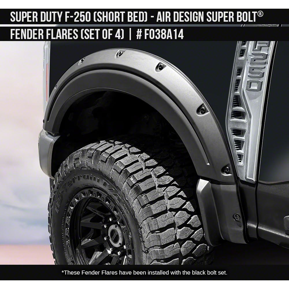Application. These Air Design Super Bolt Fender Flares fit 2023-2026 F-350 Super Duty SuperCrew SRW w/ 6-3/4-Foot Bed.