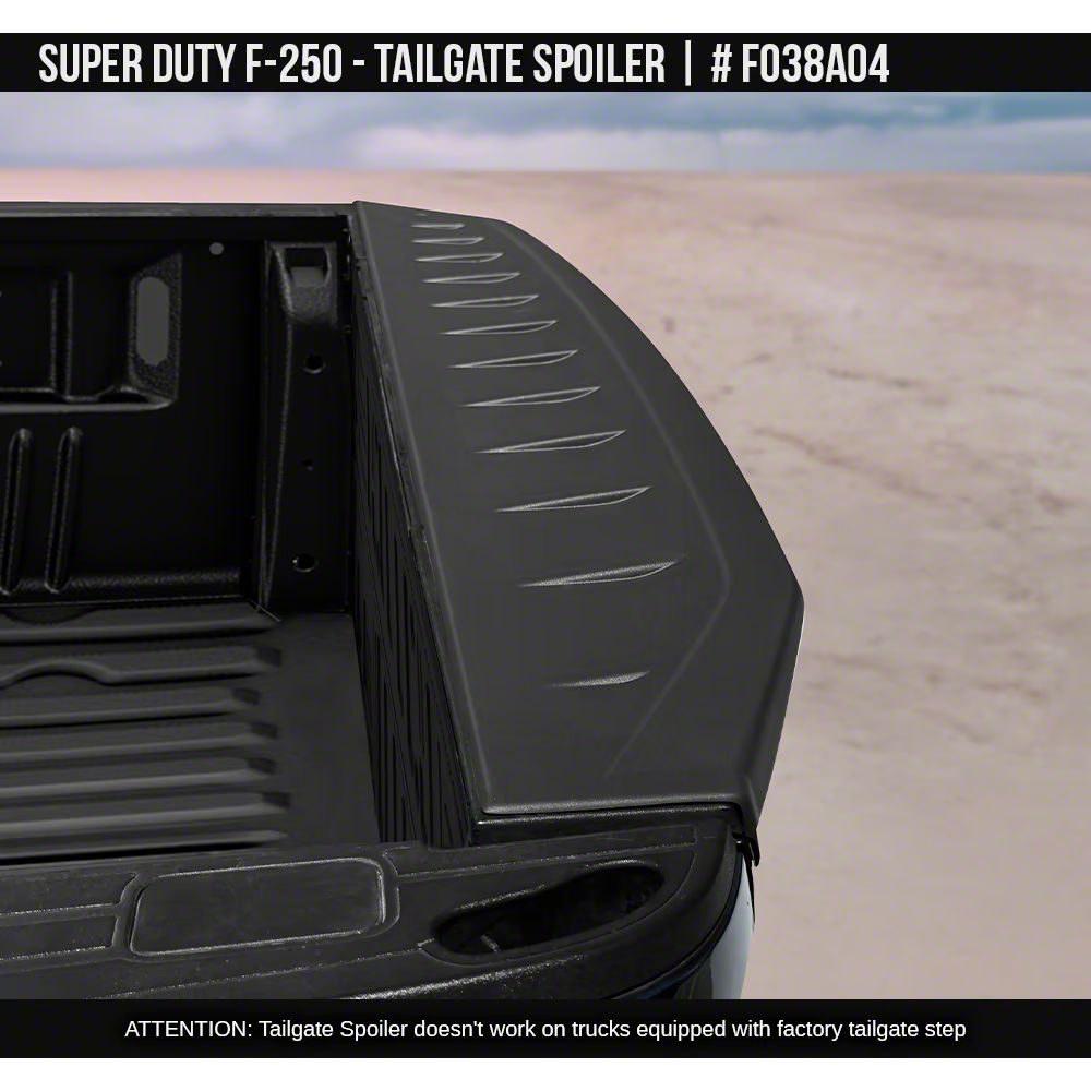 Application. This Air Design Tailgate Spoiler fits 2023-2026 Ford F-350 Super Duty models without tailgate step. It enhances rear-end styling while promoting aerodynamic performance and offering a custom look that stands out from factory trim.