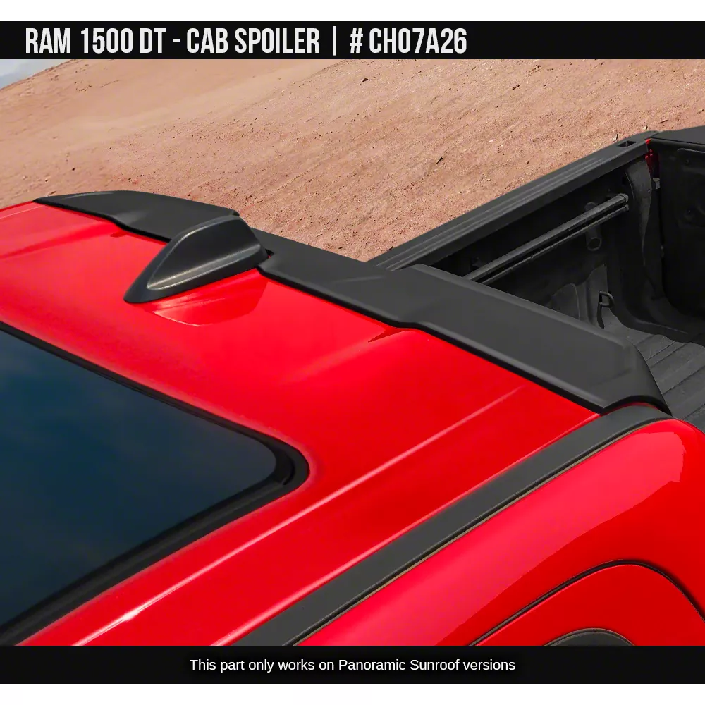 Application. This Air Design Cab Spoiler fits 19-26 RAM 1500 w/ Panoramic Sunroof.