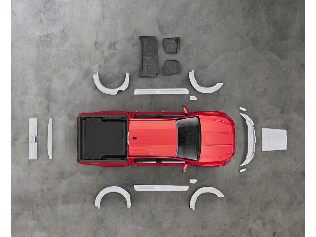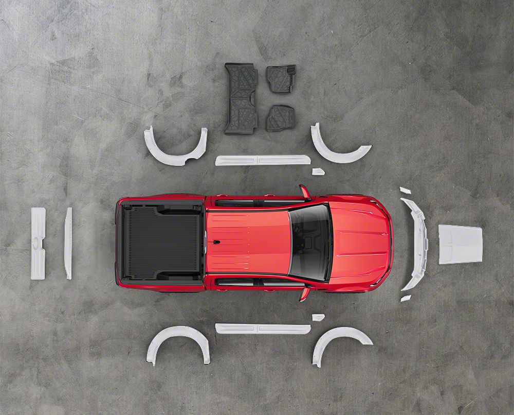 Seamless Truck Transformation. If you want to give your rig a facelift using high-quality yet elegant components, look no further than this off-road styling kit. This set features a wide variety of attractive items, including the tailgate spoiler, fender vents, tailgate applique, door rocker panels, and super bolt fender flares. These pieces improve the visuals of your ride while making it better prepared for off-road adventures.