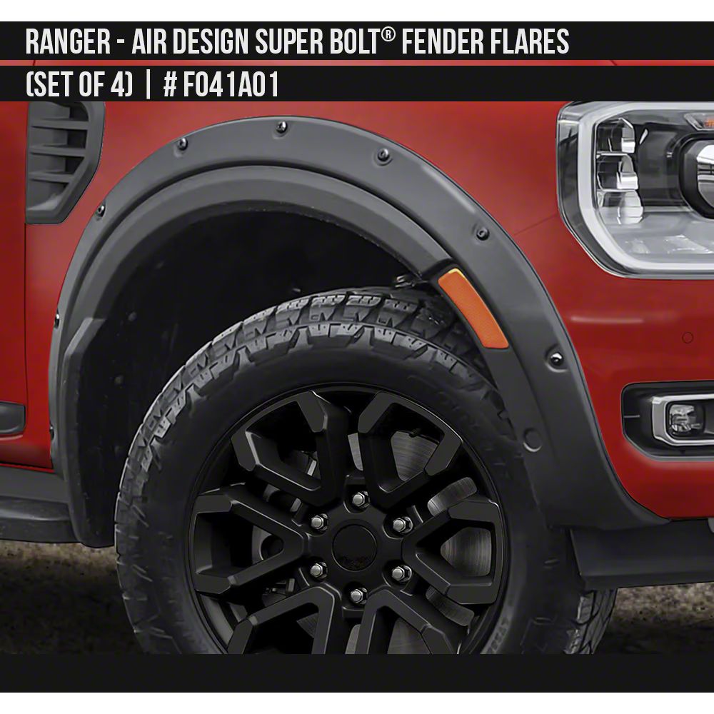 Application. The Air Design Super Bolt Fender Flares; Satin Black fit 2024-2026 Ranger models, excluding Raptor.