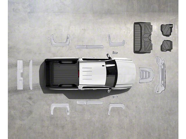 Application. The Air Design Off-Road Styling Kit with Fender Vents; Unpainted fits 2016-2018 Sierra 1500 Crew Cab with 5.80-Foot Short Box Models.