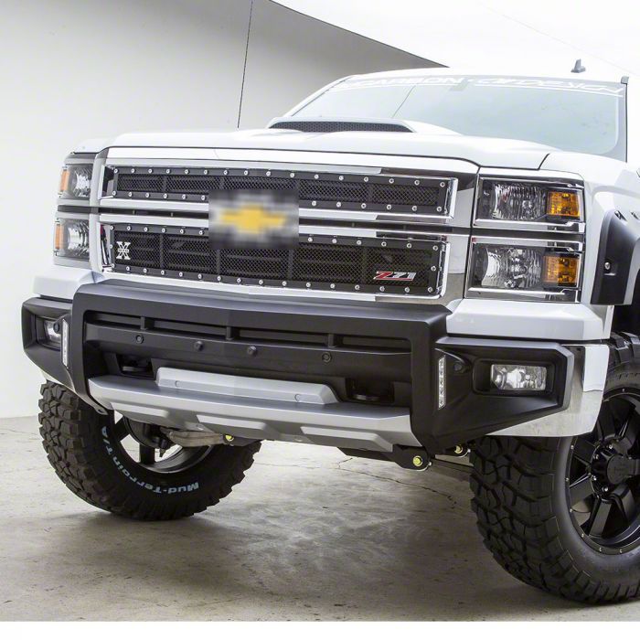 Superior Front Bumper Accessory. The Air Design Unpainted Front Bumper Guard with DRL; Satin Black is the stylish and functional front bumper accessory that’s designed to transform the look of your Silverado 1500. Specifically, this bumper guard features an angular design and will mount onto your truck’s front bumper right below the main grille, completely changing its style. Moreover, this component’s robust construction offers extra protection against minor impacts.