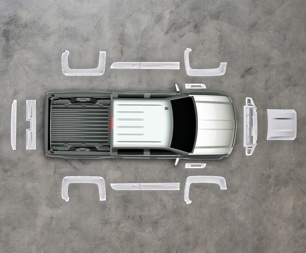Construction and Appearance. Crafted from high-quality, impact-resistant materials, this styling kit is built to endure rough conditions and provide flexibility without cracking or fading. The unpainted finish allows you to customize the flares to match your vehicle's paint color, offering a tailored and cohesive look.