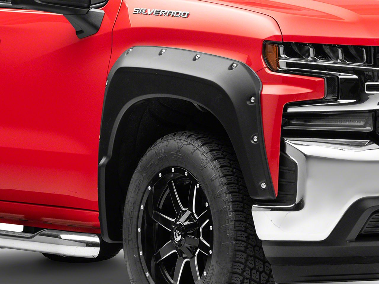 Fierce Stance and Tough Protection. Reinforce your Chevrolet Silverado’s protection and style by installing these Air Design Super Bolt Fender Flares; Satin Black. Each of these tough fender flares features a wider tire coverage to keep mud and road debris from hitting the undercarriage and body. These fender flares come in a rugged bolted look that boosts your truck’s aggressive stance.