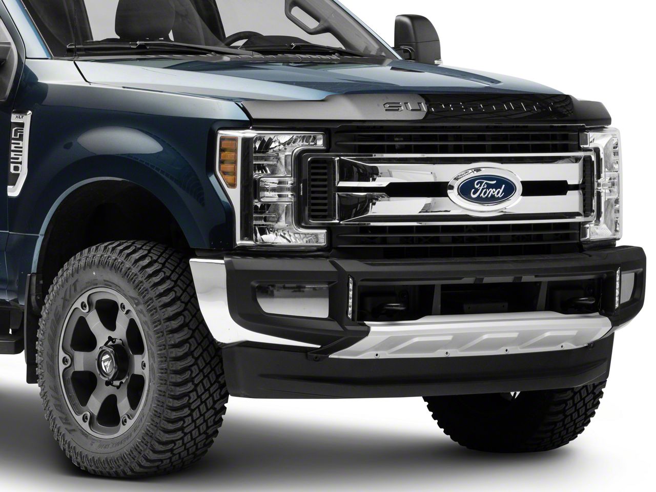Application. The Air Design Satin Black Front Bumper Guard with DRL fits all 2017-2019 Ford F-250 Super Duty models.