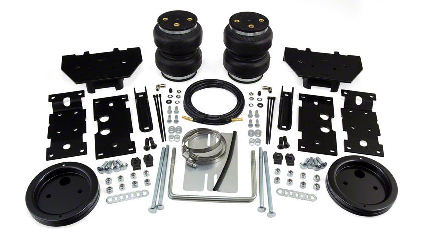 Description. LoadLifter 5000 ULTIMATE adjustable air spring kits feature all of the benefits of our heaviest rated air spring with the addition of an internal jounce bumper inside the spring for the ultimate in ride comfort. An Air Lift exclusive product! Fits vehicles with in-bed hitches. Tow and haul the heaviest loads with safety and comfort with LoadLifter 5000 ULTIMATE. Works with vehicle's leaf springs to provide up to 5,000 lbs. of rear load leveling capacity and keeps the vehicle riding stable, level and comfortable whether loaded or unloaded. Fully adjustable from 5 to 100 PSI. The closed-cell urethane foam jounce bumper inside the ULTIMATE air springs provide a cushion of air that absorbs shock, eliminates harsh jarring on rough roads and protects vehicles carrying heavy loads. Never bottom out again with the ULTIMATE! LoadLifter 5000 ULTIMATE air springs are maintenance free! Safely run with zero air pressure because of the internal jounce bumper. Replaces factory jounce bumper that is sometimes removed when adding air springs. Easy to install in less than 2 hours. Requires no drilling into frame! Includes industry-exclusive 60 Day No Questions Money Back Guarantee! Includes the most comprehensive Lifetime Warranty in the industry---covers all kit contents including brackets, fittings and air line. Air springs are built like a tire and are reinforced by durable, 2-ply fabric for maximum strength. Exclusive upper and lower roll plates included. Protect the springs from sharp edges, such as brackets or the frame. They increase load capacity up to 10%. The kit includes 2 air springs, brackets, air lines, Schrader valve and all of the hardware needed for installation. Includes fully illustrated instruction manual. Add an Air Lift on-board air compressor system to inflate and deflate air springs with the touch of a button from inside or outside of the vehicle.