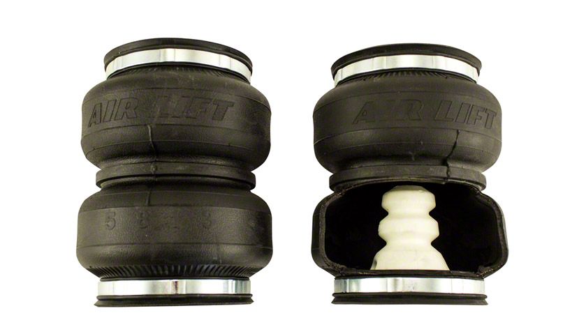 Description. LoadLifter 5000 ULTIMATE adjustable air spring kits feature all of the benefits of our heaviest rated air spring with the addition of an internal jounce bumper inside the spring for the ultimate in ride comfort. An Air Lift exclusive product! Fits vehicles with in-bed hitches. Tow and haul the heaviest loads with safety and comfort with LoadLifter 5000 ULTIMATE. Works with vehicle's leaf springs to provide up to 5,000 lbs. of front load leveling capacity and keeps the vehicle riding stable, level and comfortable whether loaded or unloaded. Fully adjustable from 5 to 100 PSI. The closed-cell urethane foam jounce bumper inside the ULTIMATE air springs provide a cushion of air that absorbs shock, eliminates harsh jarring on rough roads and protects vehicles carrying heavy loads. Never bottom out again with the ULTIMATE! LoadLifter 5000 ULTIMATE air springs are maintenance free! Safely run with zero air pressure because of the internal jounce bumper. Replaces factory jounce bumper that is sometimes removed when adding air springs. Easy to install in less than 2 hours. Includes industry-exclusive 60 Day No Questions Money Back Guarantee! Includes the most comprehensive Lifetime Warranty in the industry---covers all kit contents including brackets, fittings and air line. Air springs are built like a tire and are reinforced by durable, 2-ply fabric for maximum strength. Exclusive upper and lower roll plates included. Protect the springs from sharp edges, such as brackets or the frame. They increase load capacity up to 10%. The kit includes 2 air springs, brackets, air lines, Schrader valve and all of the hardware needed for installation. Includes fully illustrated instruction manual. Add an Air Lift on-board air compressor system to inflate and deflate air springs with the touch of a button from inside or outside of the vehicle.