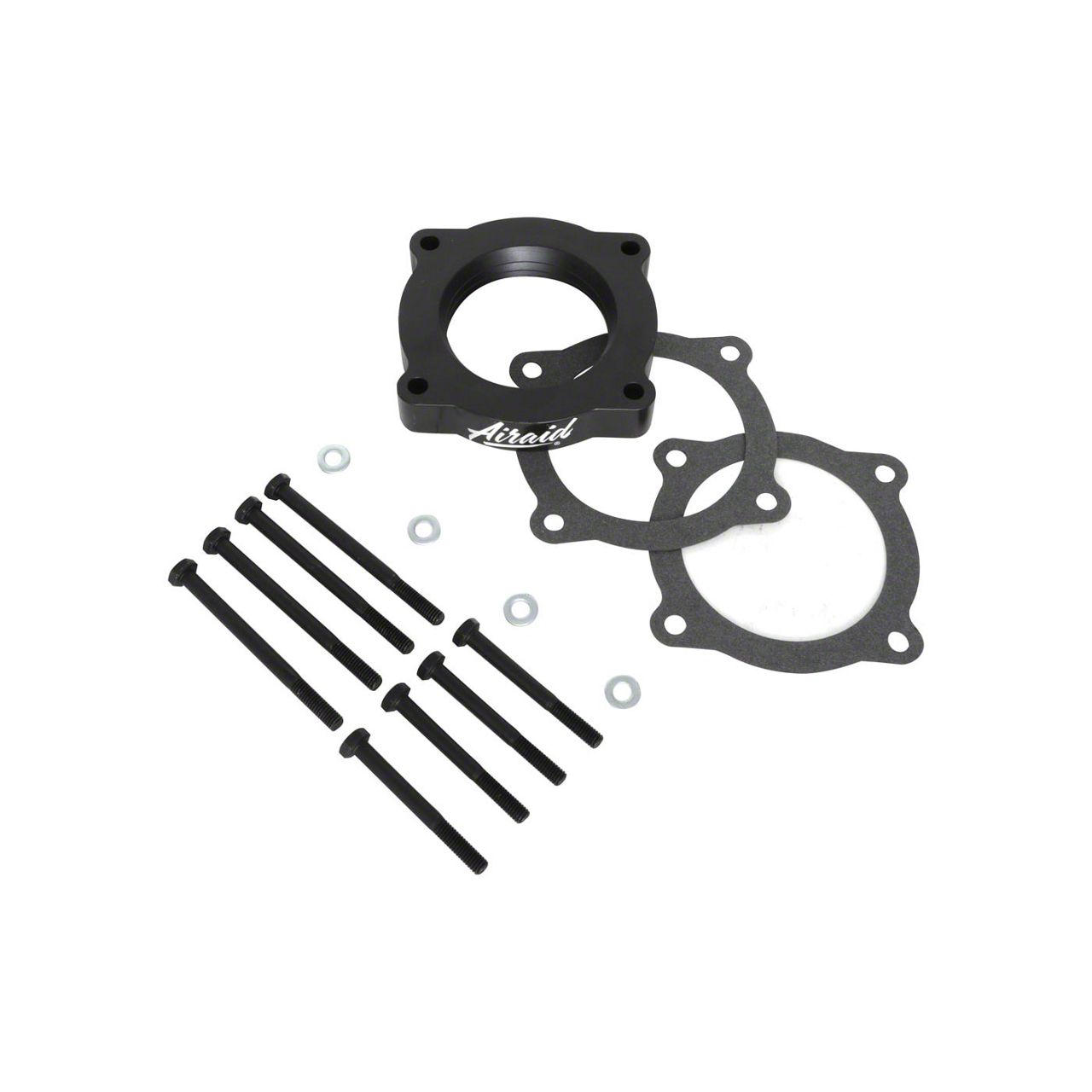 CNC machined from the highest quality aircraft grade 6061-T6 billet aluminum the Airaid Poweraid Throttle Body Spacer is anodized in a black finish for great under styling and includes all the necessary hardware and instructions for a simple straightforward installation.