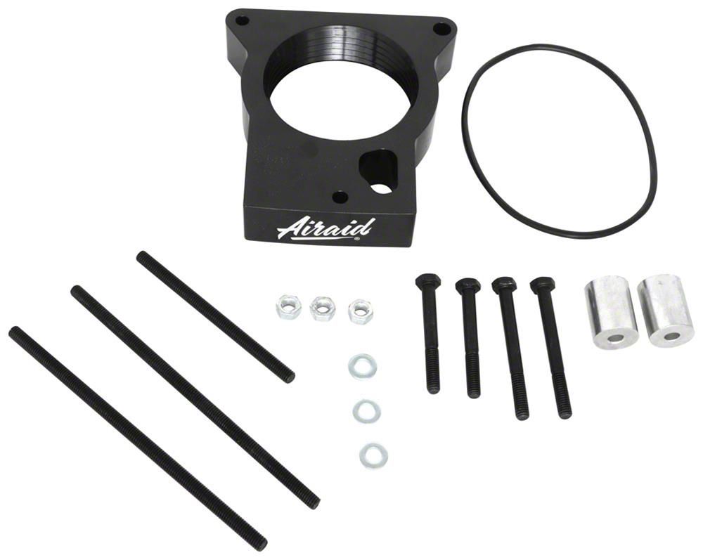 Description. The AIRAID Throttle Body Spacer is designed to enhance off-idle torque from 800 rpm to approximately 3,000 rpm. The spacer utilizes it's unique, patented Helix Bore design to spin the incoming air charge as it passes through the throttle body spacer. The spinning air action boosts the velocity of the incoming air and contributes to better atomization of the air/fuel mixture as the air charge enters the combustion chamber. The end result is more part-throttle torque and improved mid-range power.