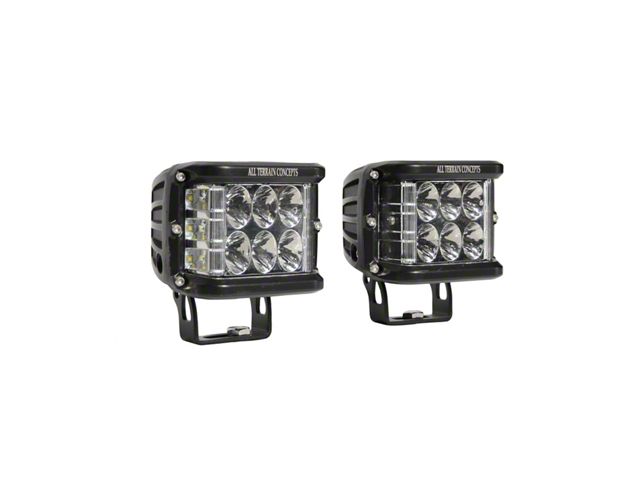 Application. This All Terrain Concepts Side Shooter LED Pod Lights (Pair) fits universal fitment, accommodating a broad range of vehicles and making it a versatile choice for drivers seeking to enhance their vehicle's lighting capability.