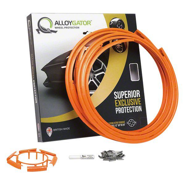 Strong Protection. The AlloyGator Wheel Protectors offer the ultimate protection for your alloy wheels. These orange wheel protectors are made from a super tough nylon blend and are designed to be physically integrated between the tire and alloy, providing robust and unrivaled wheel rim protection.