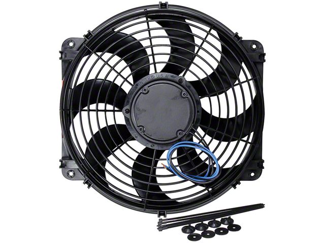 Construction and Appearance. Featuring a 13-inch curved blade configuration, this fan comes factory-set as a puller but can be easily converted to a pusher by flipping the blades and reversing the wiring. Its low amperage draw makes it compatible with performance applications where electrical load must be minimized, and it integrates seamlessly into most cooling systems.