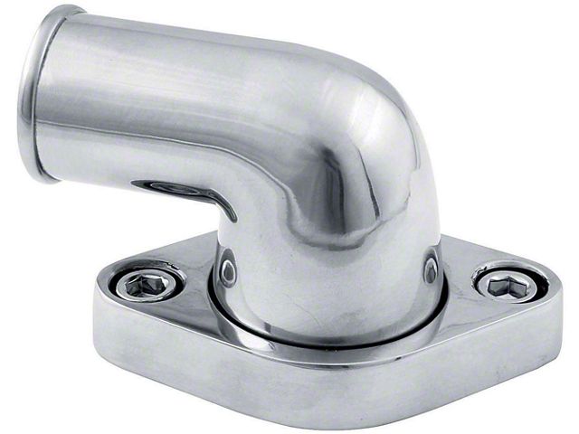 Construction and Appearance. Crafted from polished aluminum, this water neck offers durability and a clean, performance-style look under the hood. The two-piece design with a precision-machined O-ring seal ensures a leak-free connection while allowing for easy directional adjustments during installation or maintenance.