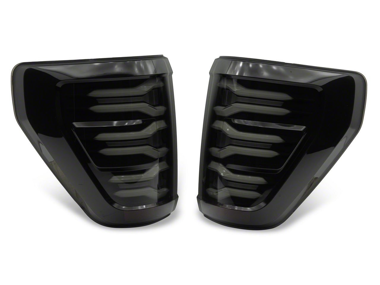 Application. This LUXX-Series LED Tail Lights in Black Housing and Smoked Lens fits all 2021-2023 Ford F-150 models w/o Blind Spot Sensor.