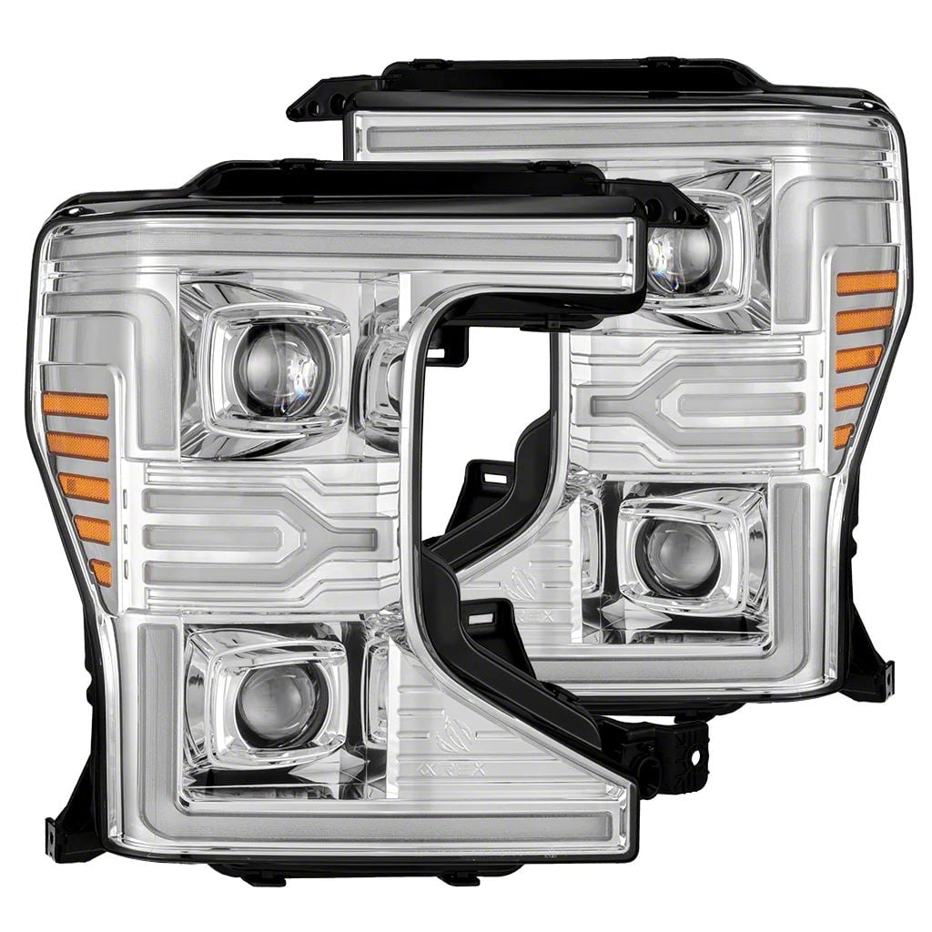 Premium LED Projector Headlights. The AlphaRex LUXX-Series LED Projector Headlights bring modern styling, advanced technology, and improved nighttime visibility to your Super Duty. Featuring LUXX LEDs with dual-projector or single dual-beam designs, these headlights are engineered for precision light distribution and compliance with DOT/SAE standards. The AlphaRex LUXX-Series LED Projector Headlights combine performance, safety, and style with unique features like dynamic startup lighting and sequential turn signals.
