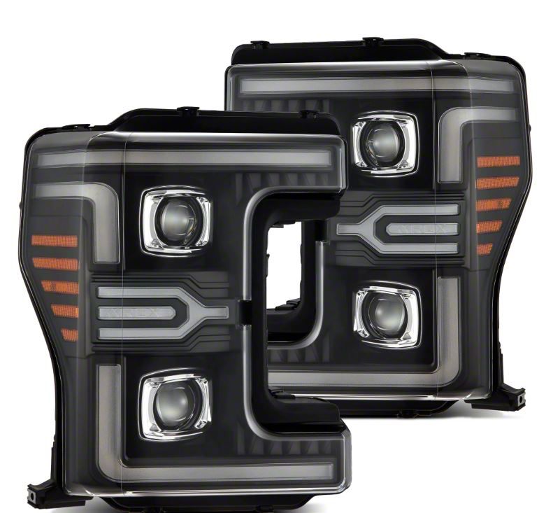 Application. This AlphaRex MK II LUXX-Series LED Projector Headlights; Black Housing; Clear Lens fits 2017–2019 F-350 Super Duty models with factory halogen headlights.