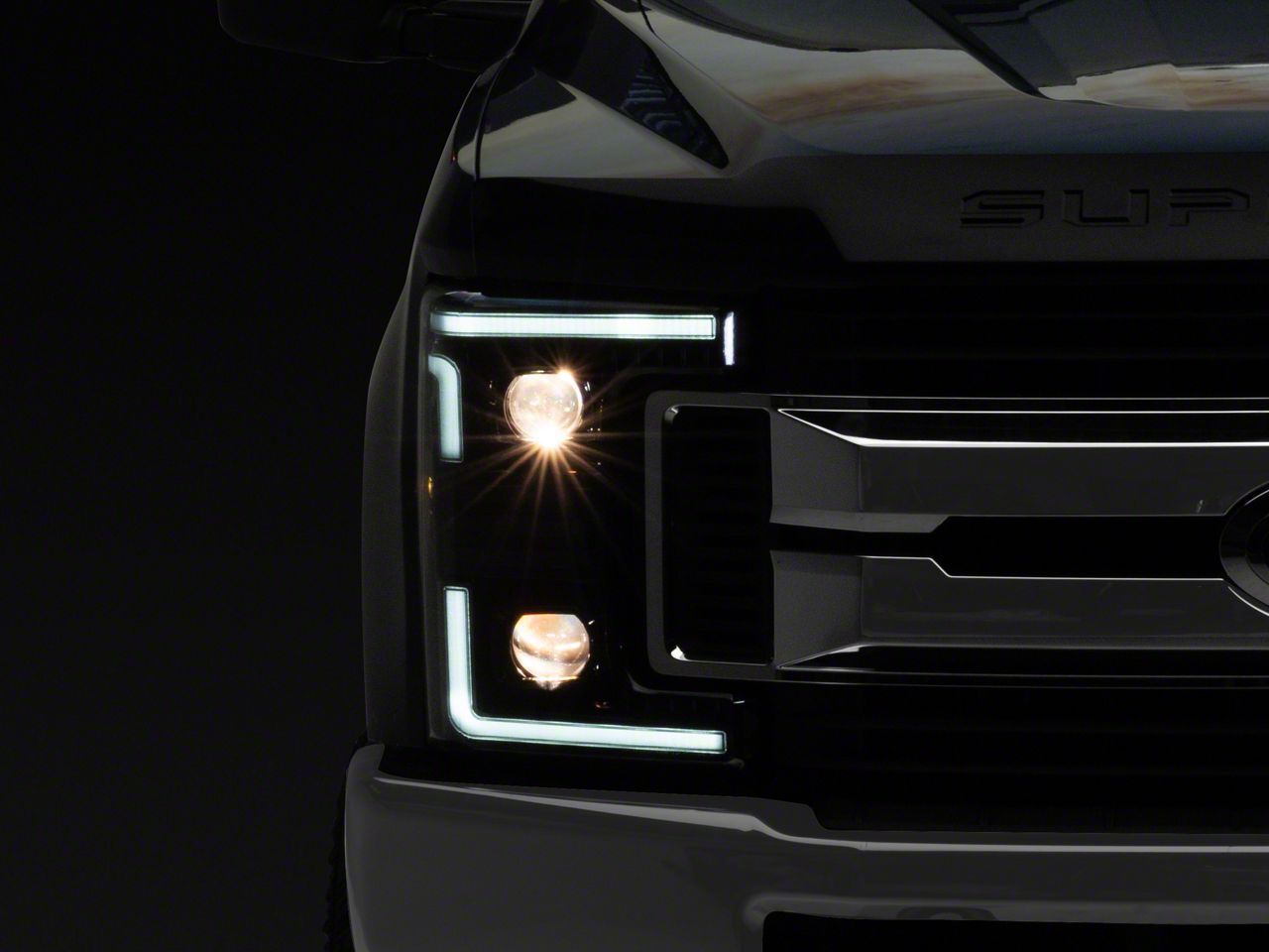 Application. These AlphaRex MK II PRO-Series LED Projector Headlights fit 2017-2019 F-350 Super Duty Models with Factory Halogen Headlights.