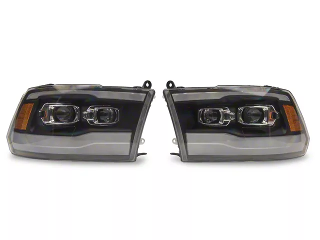 Remarkable Headlight Units. Take your RAM 1500’s exterior appearance to the next level by replacing its factory headlights with these Black AlphaRex PRO-Series Projector Headlights. These lighting components feature an eye-catching design that’s complemented by their black powder-coated housings. They also deliver high-performance lighting due to their projector headlight construction, boosting your vehicle’s illuminative performance and looks as a result.