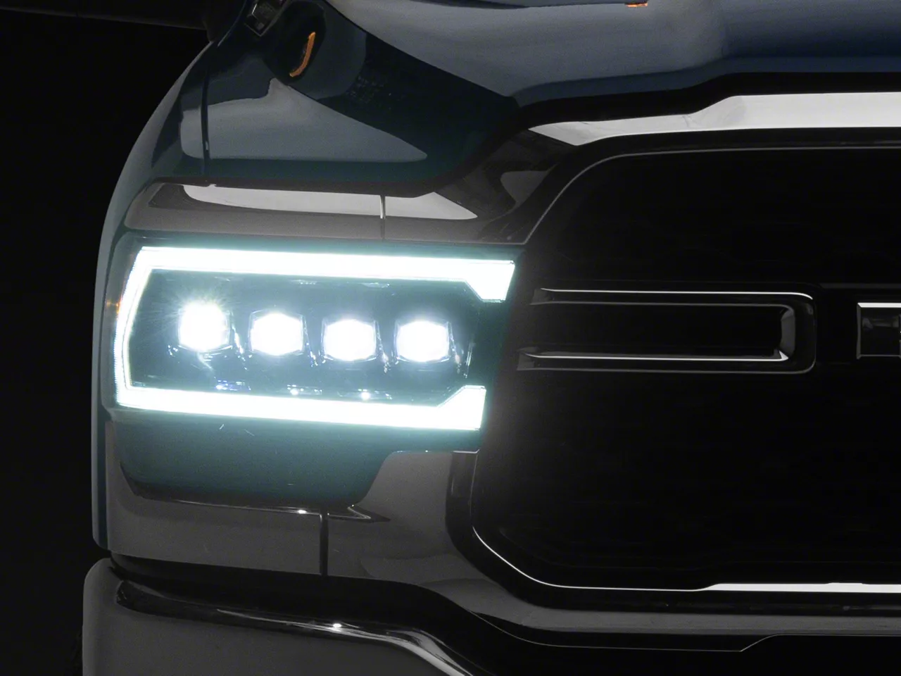 Application. The NOVA-Series LED Projector Headlights; Alpha Black Housing; Clear Lens fits 2019-2024 RAM 3500 with Factory Halogen Headlights