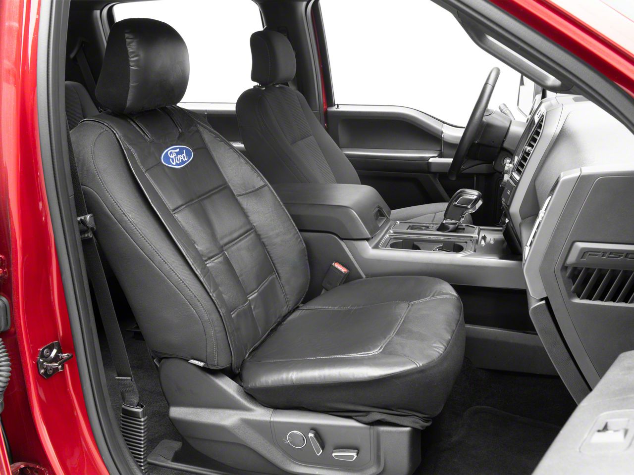 Interior Protection. Protect your F-150's front seat from the wear and tear of everyday driving with a black Alterum Sideless Seat Cover with a Ford logo. This Seat Cover will not only protect your F-150's seat, but it also features a convenient mesh cargo pocket on the back to safely store small items when driving.