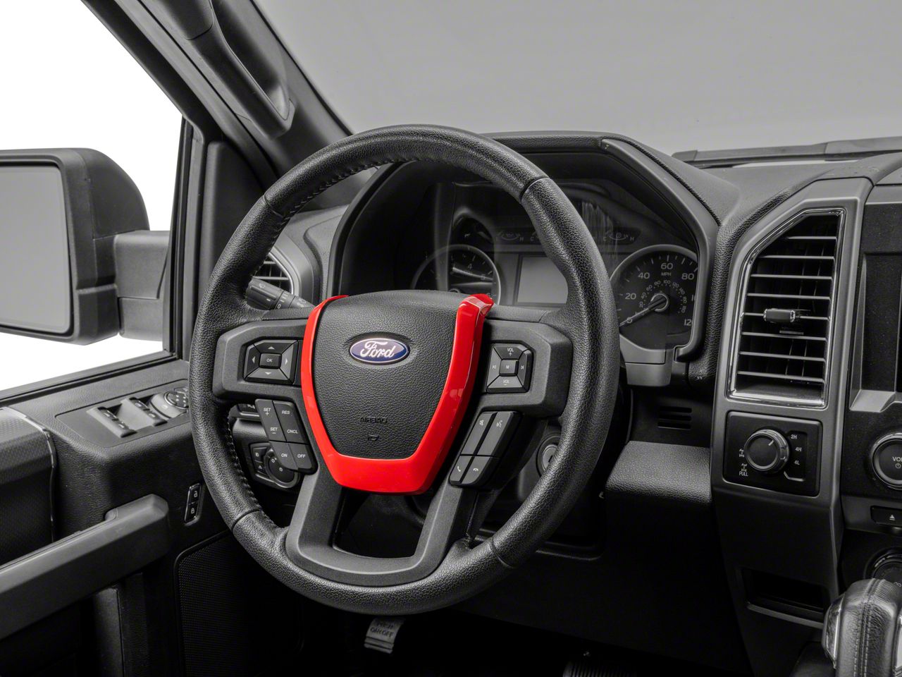 Custom Interior Styling. Add impressive custom show car styling to your F-150's interior with an RedRock Steering Wheel Horn Trim; Red. This great looking, red Horn Trim Ring Bezel is an inexpensive way to upgrade the appearance of your interior and it perfectly matches RedRock's complete line of other red interior styling parts.