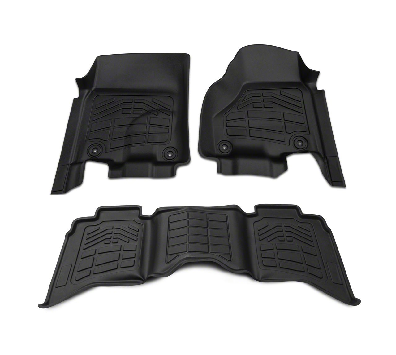 Application. These RedRock Sure-Fit Front and 2nd Row Floor Liners in Black are specifically designed to fit 2013-2018 RAM 1500 Crew Cab models. Not intended for use in vehicles equipped with vinyl floors.