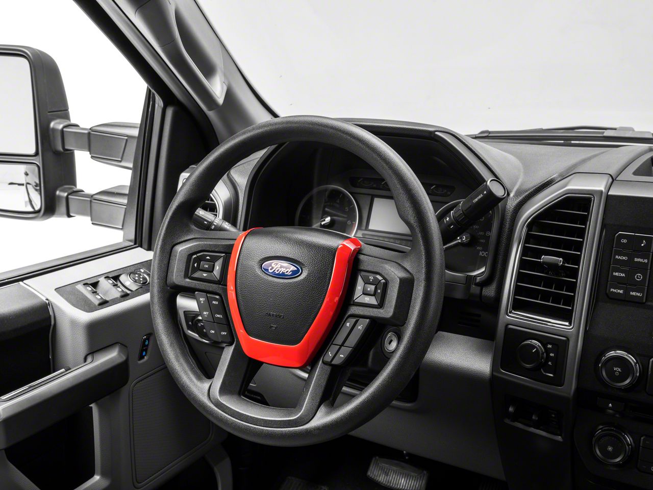 Custom Interior Styling. Add impressive custom show car styling to your F-250 Super Duty's interior with an RedRock Steering Wheel Horn / Airbag Trim Ring Bezel. This great looking, red Trim Ring Bezel is an inexpensive way to upgrade the appearance of your interior and it perfectly matches RedRock's complete line of other red interior styling parts.