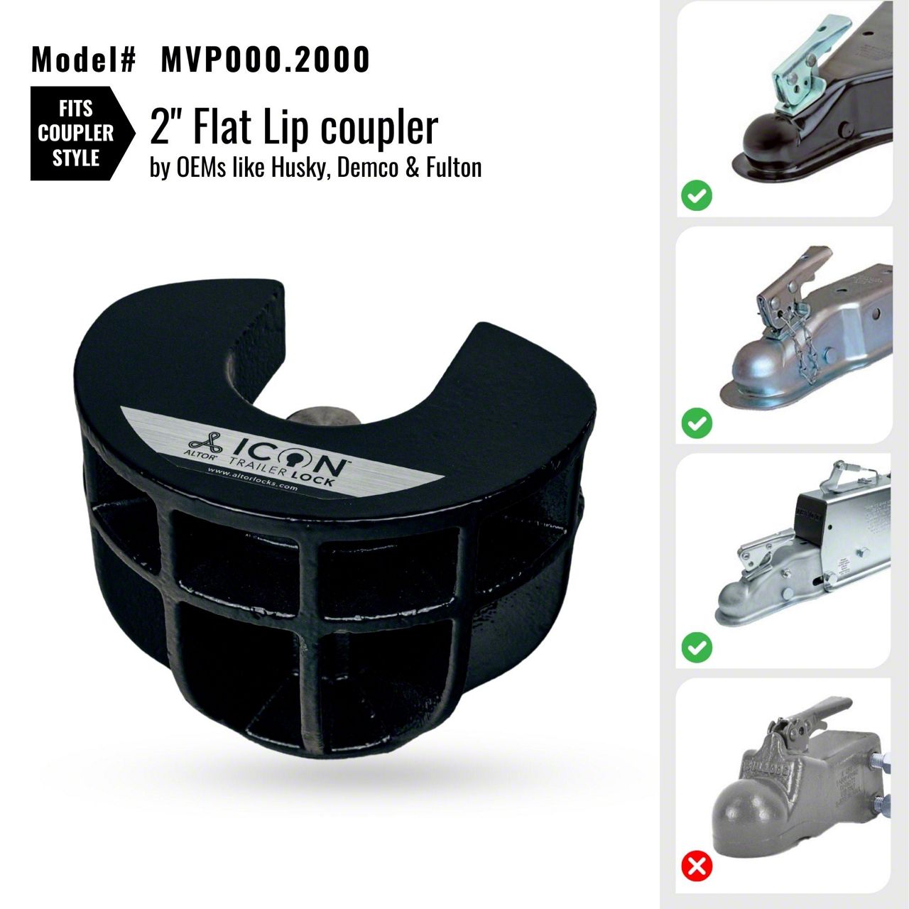 Altor Icon Trailer Coupler Lock for 2-Inch Hitch Ball; Flat Lip Coupler