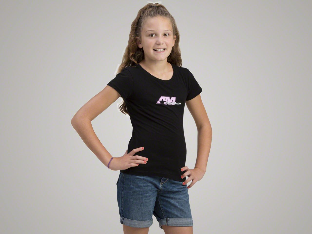 Available in Kid's Sizes. This Girls AmericanMuscle Black Signature T-Shirt is available in a variety of kid's sizes and is designed in an athletic fit. Please choose from ordering options above. For a looser fit, order one size up.