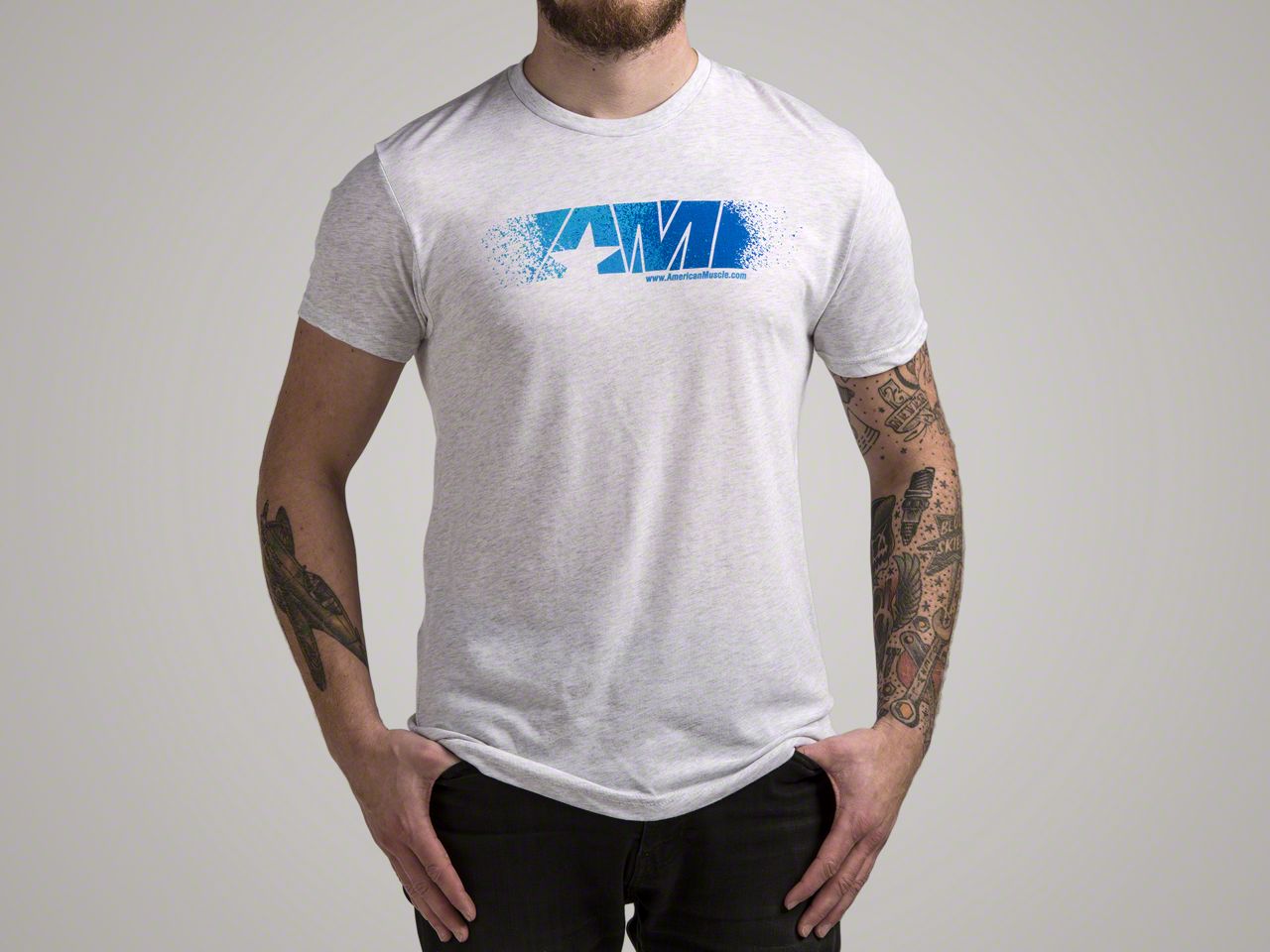 Wet Track AM Logo. Add this great looking Wet Track T-Shirt to your closest. This t-shirt features a large blue stylized wet track version of the AM Logo across the chest with a small AmericanMuscle logo on the back. This Wet Track T-Shirt is the perfect piece of attire to wear at track events, working in the garage or just hanging out with your friends and family.