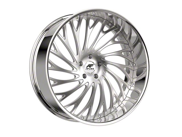 This 28x9 Amani Vamos-L Brush Center with Chrome Lip 6-Lug Wheel; 28x9; 15mm Offset is completed in a high-quality brushed finish with a chrome lip to make your wheel the envy of everyone. For added looks and durability, the wheels has a durable clear coat that withstand the rigors of daily driving.