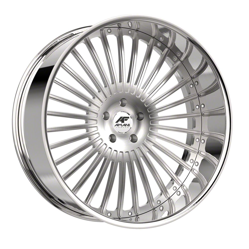 This 28x9 Amani R.E.A.L. Brush Center with Chrome Lip 6-Lug Wheel; 28x9; 18mm Offset is completed in a high-quality brushed finish with a chrome lip to make your wheel the envy of everyone. For added looks and durability, the wheels has a durable clear coat that withstand the rigors of daily driving.
