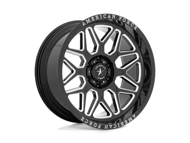 American Force Rush Gloss Black Milled 6-Lug Wheel; 20x10; -18mm Offset The American Force Rush Gloss Black Milled 6-Lug Wheel combines a sleek, sophisticated design with premium construction that enhances the visual appeal and complements a wide range of vehicle styles. This wheel is perfect for those seeking to make a bold statement while maintaining elegance and robustness.