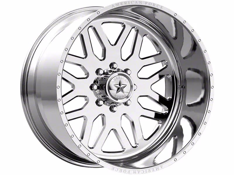 American Force B02 Trax SS Polished 8-Lug Wheel; 22x12 exudes an aesthetic allure that complements a range of vehicle styles. With its design rooted in American Force craftsmanship, this wheel accentuates your vehicle's elegant stance.