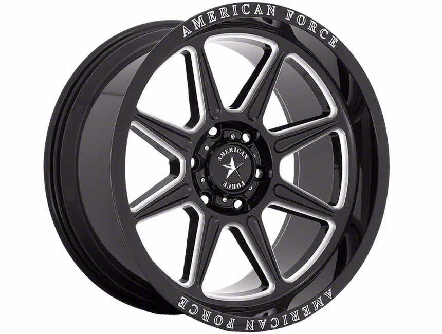 This 22x10 American Force Trail Gloss Black Milled 6-Lug Wheel is completed in a high-quality gloss black finish with steel milled accents that will create a striking appearance. There's a durable clear coat that protects against driving hazards.