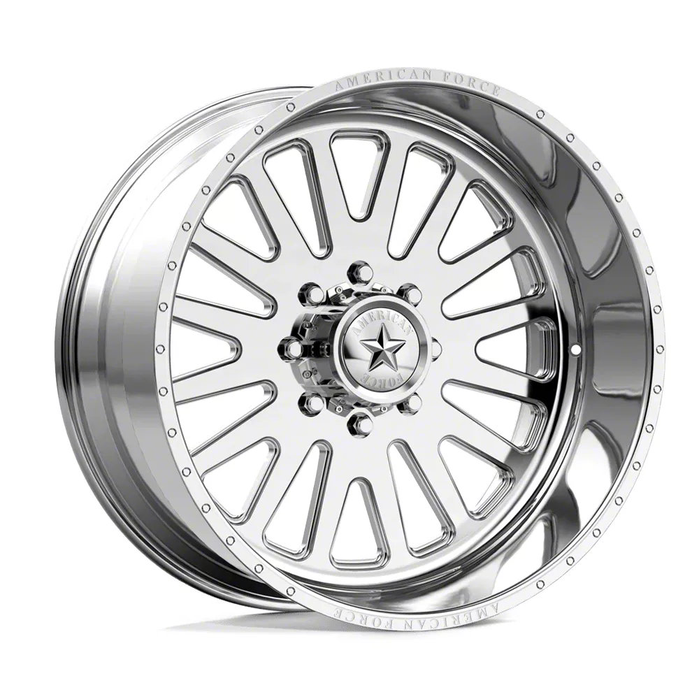 American Force F20 Atom SS Polished 6-Lug Wheel; 24x12; -40mm Offset The American Force F20 Atom SS Polished 6-Lug Wheel combines a sleek, sophisticated design with premium construction that enhances the visual appeal and complements a wide range of vehicle styles. This wheel is perfect for those seeking to make a bold statement while maintaining elegance and robustness.