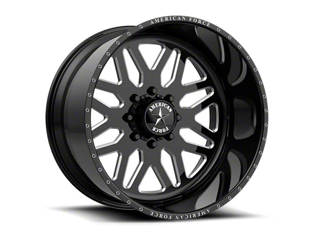 American Force B02 Trax SS Gloss Black Machined 8-Lug Wheel; 22x10; -25mm Offset The American Force B02 Trax SS Gloss Black Machined 8-Lug Wheel combines a sleek, sophisticated design with premium construction that enhances the visual appeal and complements a wide range of vehicle styles. This wheel is perfect for those seeking to make a bold statement while maintaining elegance and robustness.