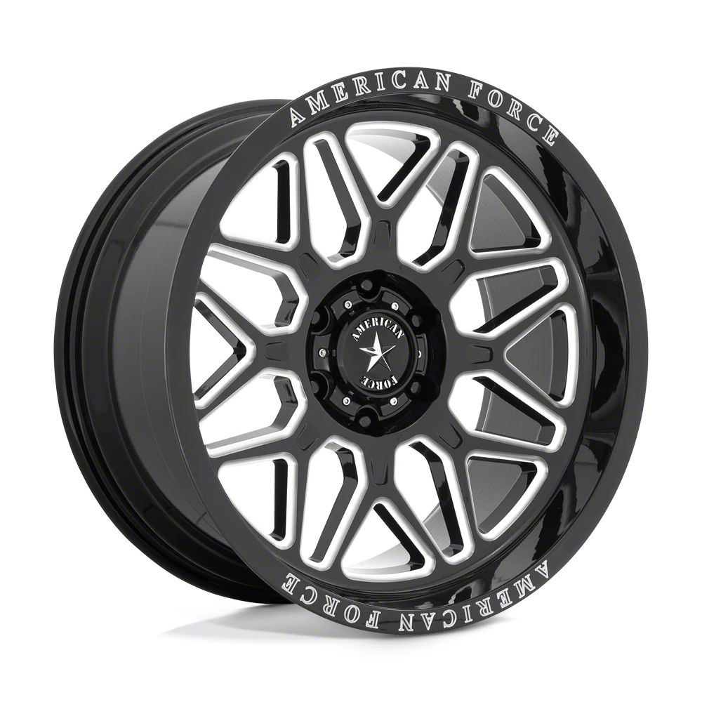 American Force Rush Gloss Black Milled 6-Lug Wheel; 20x10; -18mm Offset The American Force Rush Gloss Black Milled 6-Lug Wheel combines a sleek, sophisticated design with premium construction that enhances the visual appeal and complements a wide range of vehicle styles. This wheel is perfect for those seeking to make a bold statement while maintaining elegance and robustness.