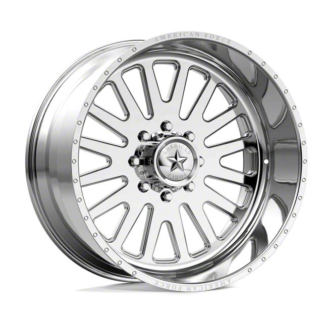 American Force F20 Atom SS Polished 6-Lug Wheel; 22x12; -40mm Offset The American Force F20 Atom SS Polished 6-Lug Wheel combines a sleek, sophisticated design with premium construction that enhances the visual appeal and complements a wide range of vehicle styles. This wheel is perfect for those seeking to make a bold statement while maintaining elegance and robustness.